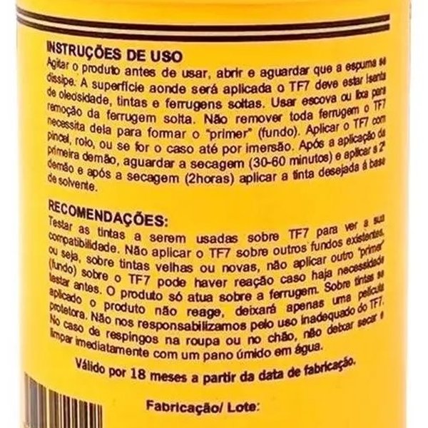 Diga adeus à ferrugem com o Convertedor TF7! Pronto para uso, o TF7 Convertedor de Ferrugem 200ml age diretamente sobre superfícies metálicas, neutralizando a corrosão e criando uma base resistente para pintura. Ideal para portões, grades, ferramentas e estruturas de ferro, ele é fácil de aplicar, tem alto rendimento e proporciona proteção duradoura. ✔️ Aplicação direta ✔️ Base água – menos odor ✔️ Resultado rápido e eficaz 👉 Solução prática e econômica para o seu dia a dia!