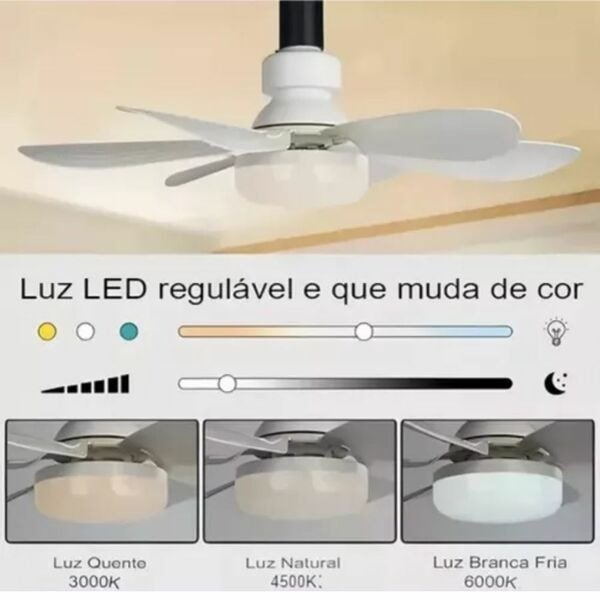Com vida útil de 25.000 horas, soquete E27, proteção IP20 e apenas 470 g, é uma luminária ventilador leve, prática e segura, ideal para quem deseja modernidade sem complicações.